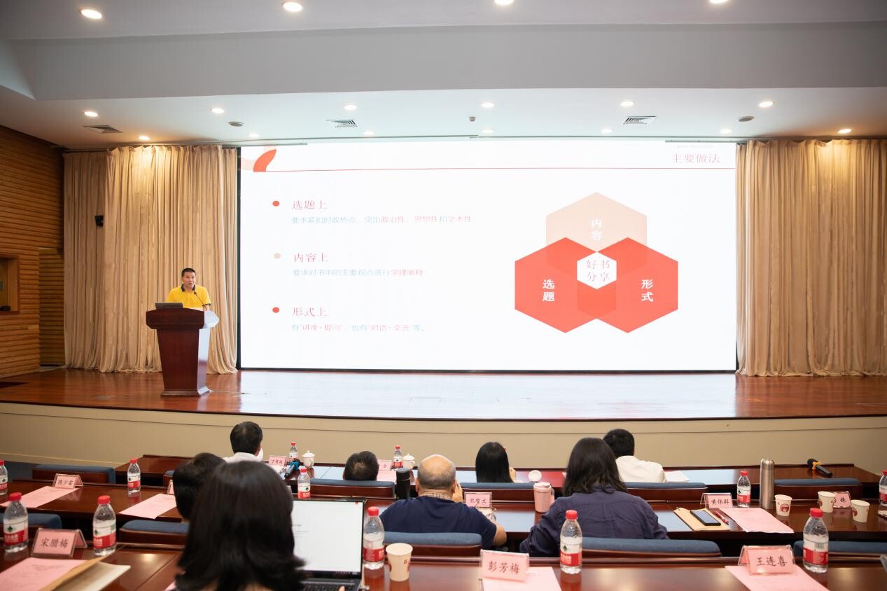 五星支部代表——党史党建党性教研部党支部书记王定毅分享了五星支部创建工作的经验与做法。党史党建党性教研部党支部以学科的专业角度,用“微党课”的方式开展第一议题学习,做到党建与业务双融双促,推行段读法等许多亮点和特点都值得学习。