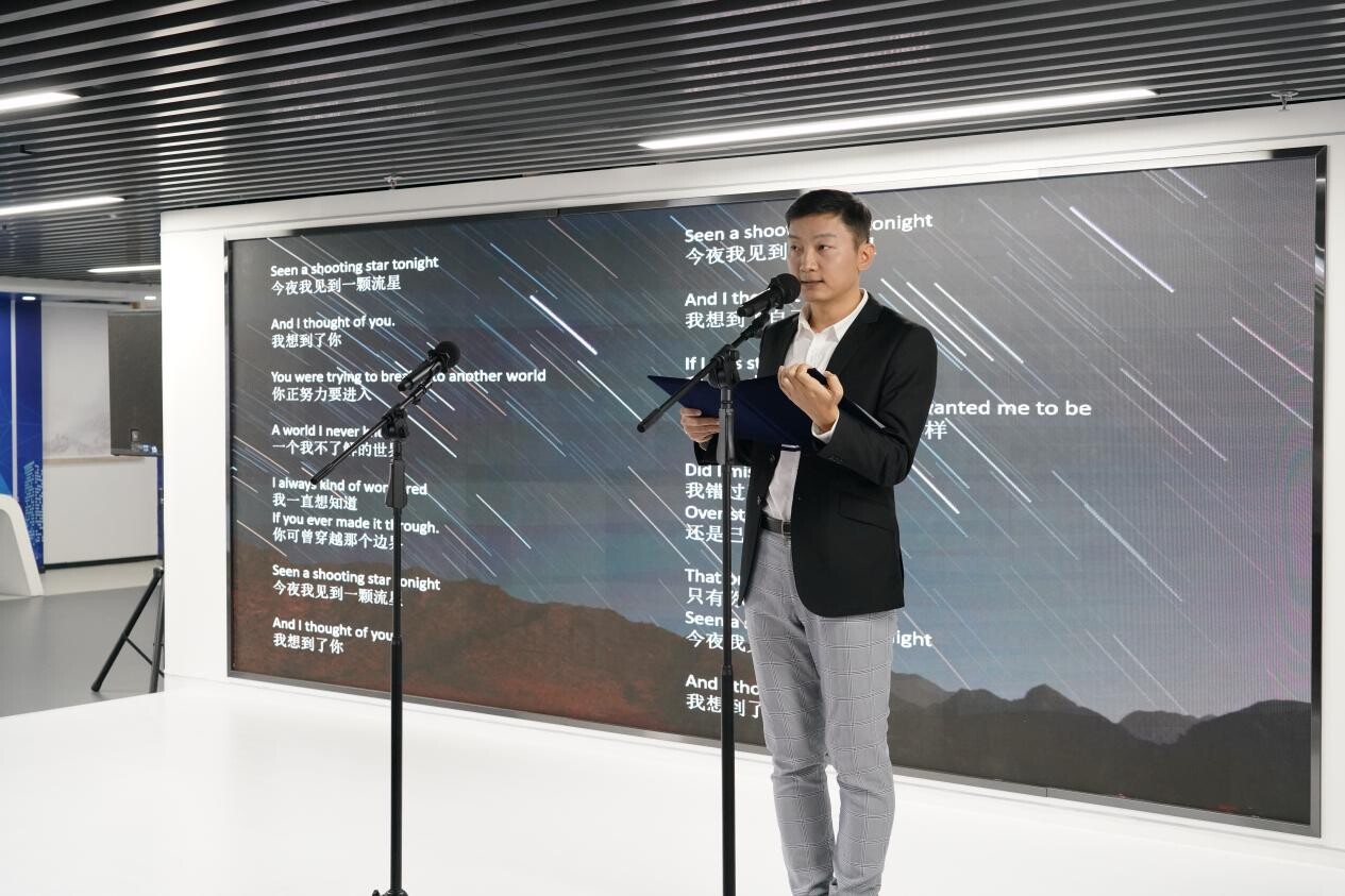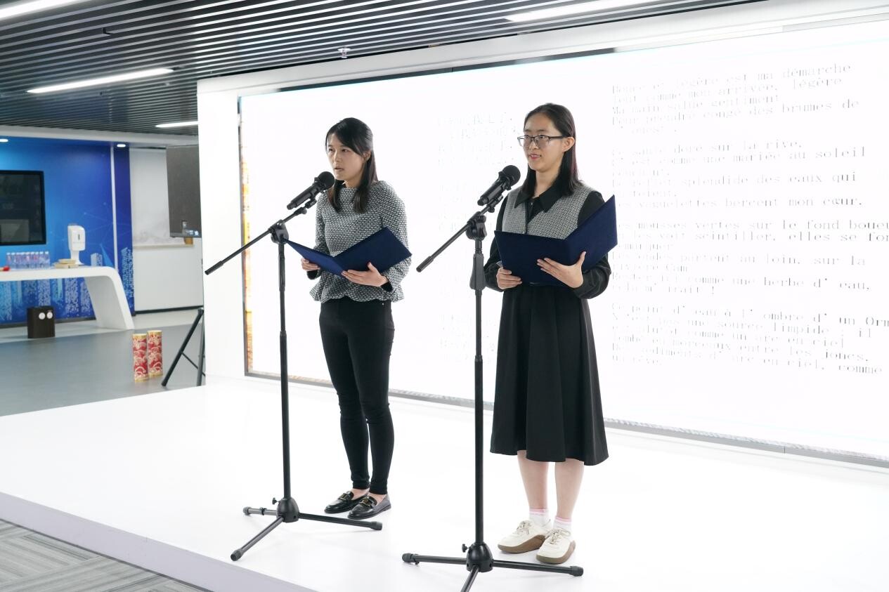 朗诵会形式丰富,精彩纷呈,集朗诵、音乐、艺术相结合,既有《水调歌头·明月几时有》《再别康桥》《致橡树》等经典文脉,也有《新年你好》《当时我们选择了这座城市》《给》等时代跫音,还有《当我真正开始爱自己》《shooting star》《Companionship of Books》等国外名篇。一篇篇脍炙人口诗文经过表演者的精彩诠释,既呈现了新时代“诗与远方”的独特意境,又展示了中华文化的深厚底蕴。中文、英文、法文、西文等多语种轮番上演,现场气氛热烈,响起一阵又一阵热烈的掌声,整场朗诵会为观众献上了精彩、高雅的艺术享受,受到了大家的欢迎和好评。