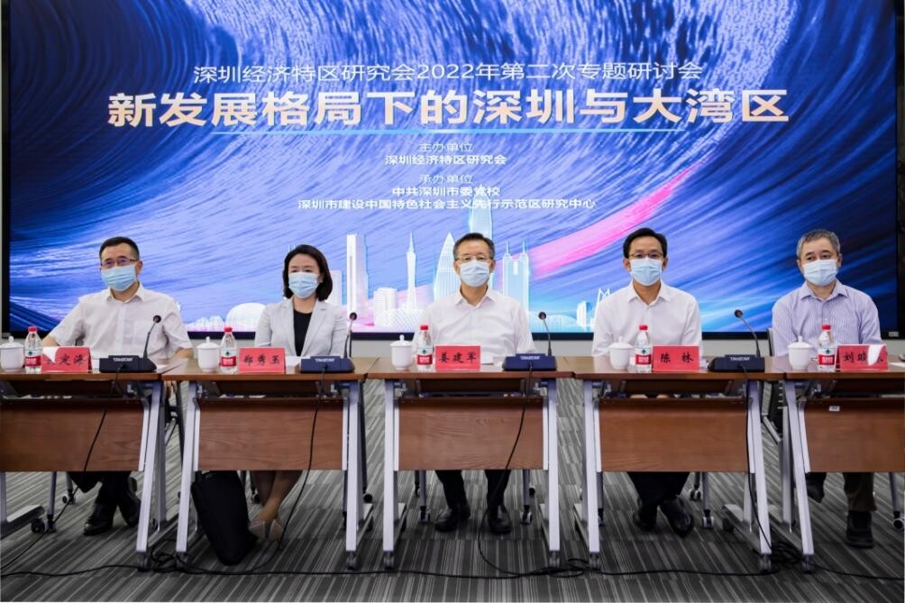 7月9日上午,由深圳经济特区研究会主办,深圳市委党校、深圳市建设中国特色社会主义先行示范区研究中心承办的深圳经济特区研究会2022年第二场研讨会在我校举办。市政协副主席、深圳经济特区研究会会长姜建军,市政协党组成员、深圳经济特区研究会副会长陈林、市委党校常务副校长(先行示范区研究中心常务副主任)郑秀玉、深圳市社会科学院党组书记、院长吴定海、深圳商报编委刘晓东等领导出席会议。来自广深两地的30多位专家学者、企业家围绕“新发展格局下的深圳与大湾区”主题展开讨论。