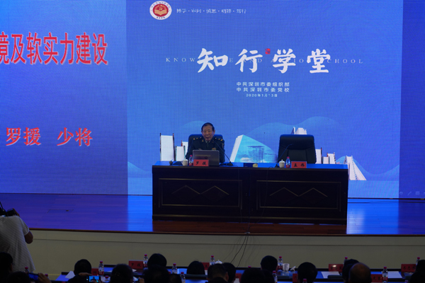 1月13日晚,面向全市党员干部的高端讲座,深圳市党员干部“知行学堂”正式开讲,市委常委、组织部部长、党校校长程步一为“知行学堂”揭幕。中国战略文化促进会常务副会长兼秘书长罗援少将以“我国周边安全环境与软实力建设”为题作首场讲座。